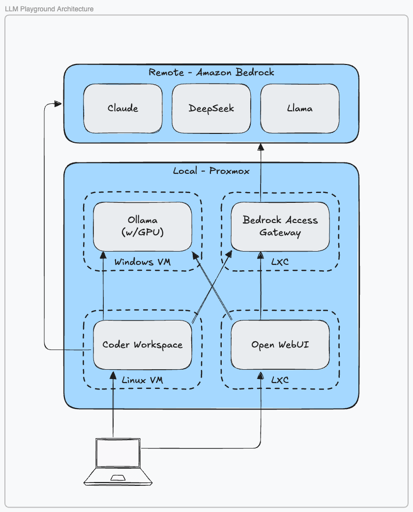 We've covered the supporting cast: Open WebUI for model interaction, Bedrock Access Gateway for cloud augmentation, Coder for remote development, and Tailscale for connectivity from anywhere. The core is solid. In upcoming posts, I plan to dig more into Coder and the tools around it, including evaluation platforms so you can measure your prompt effectiveness.